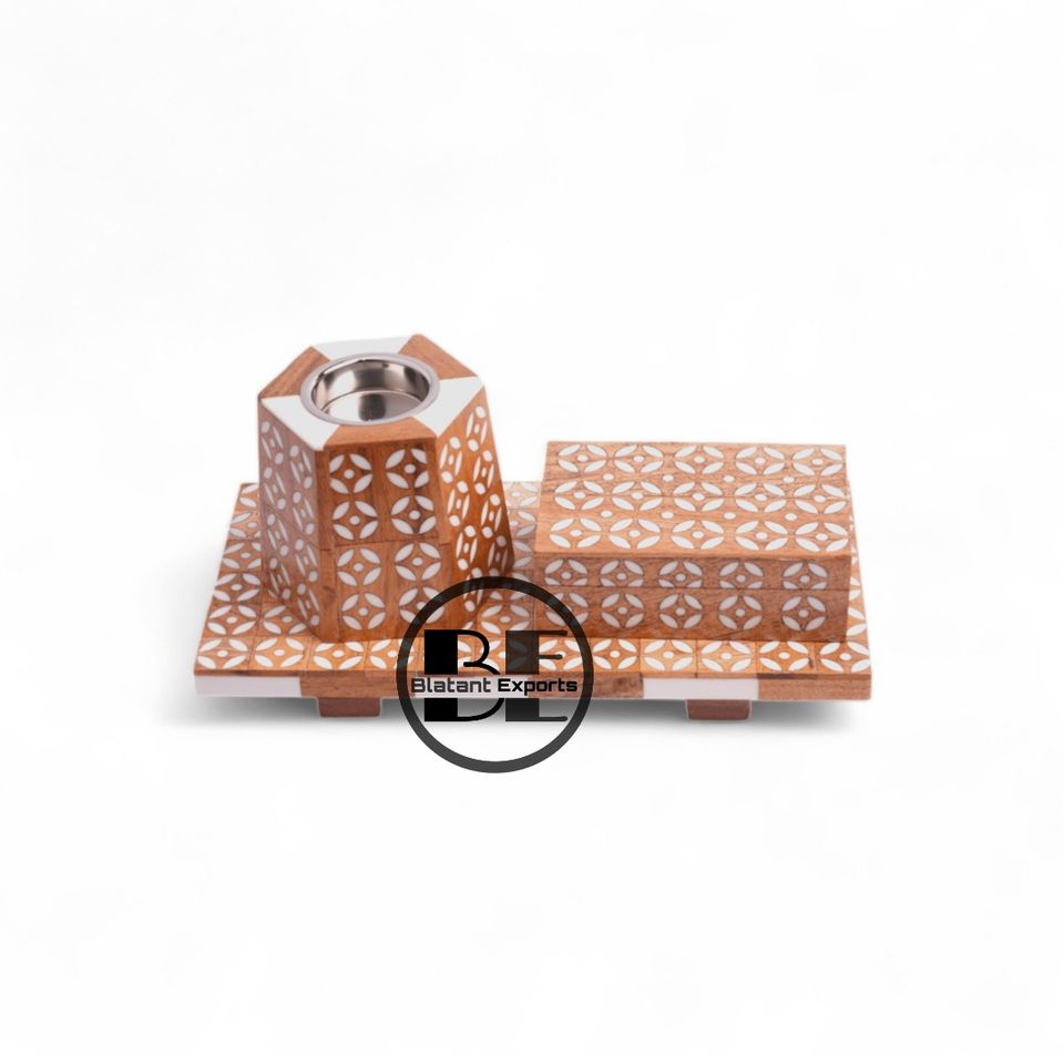 Unique Quality Wood Inlaid Bakhoor Burner Set with Resin & Elegant Silver Bowl for Ramadan Gift Arabic Traditional Products
