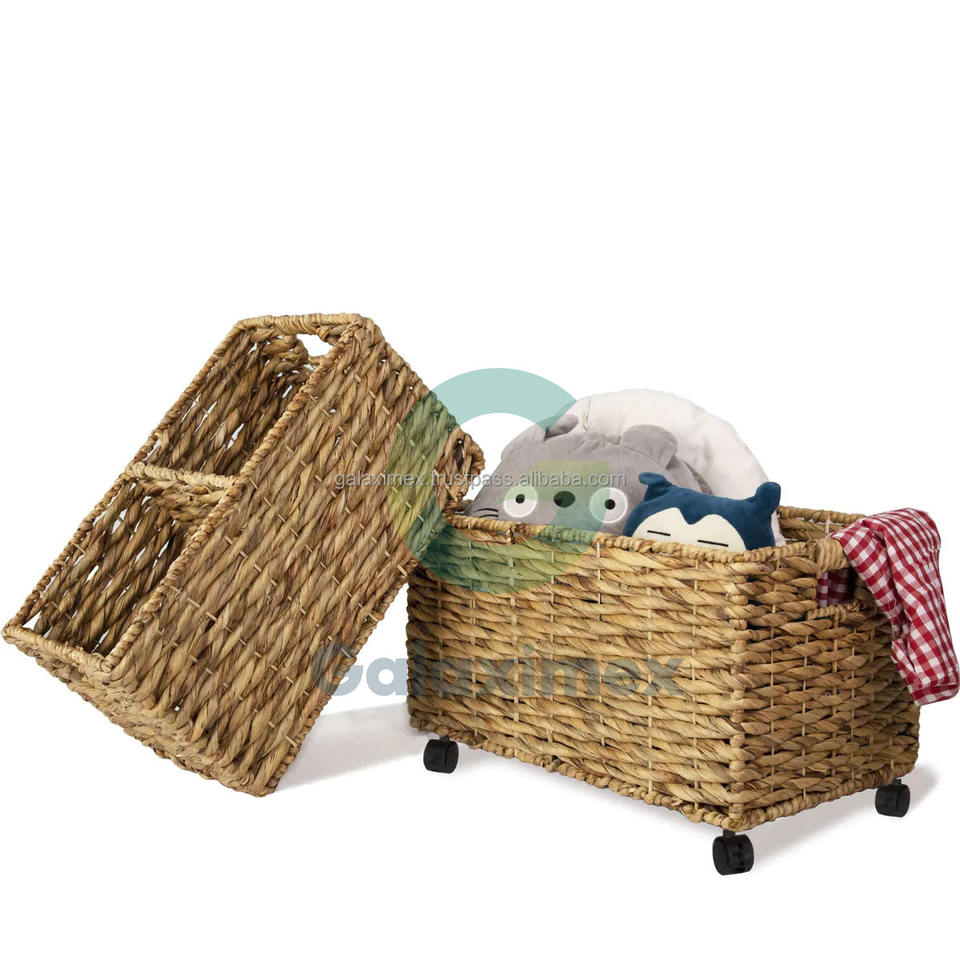 Unique Rolling Wicker Laundry Basket with Handles and Trolley for Bathroom and Home Storage