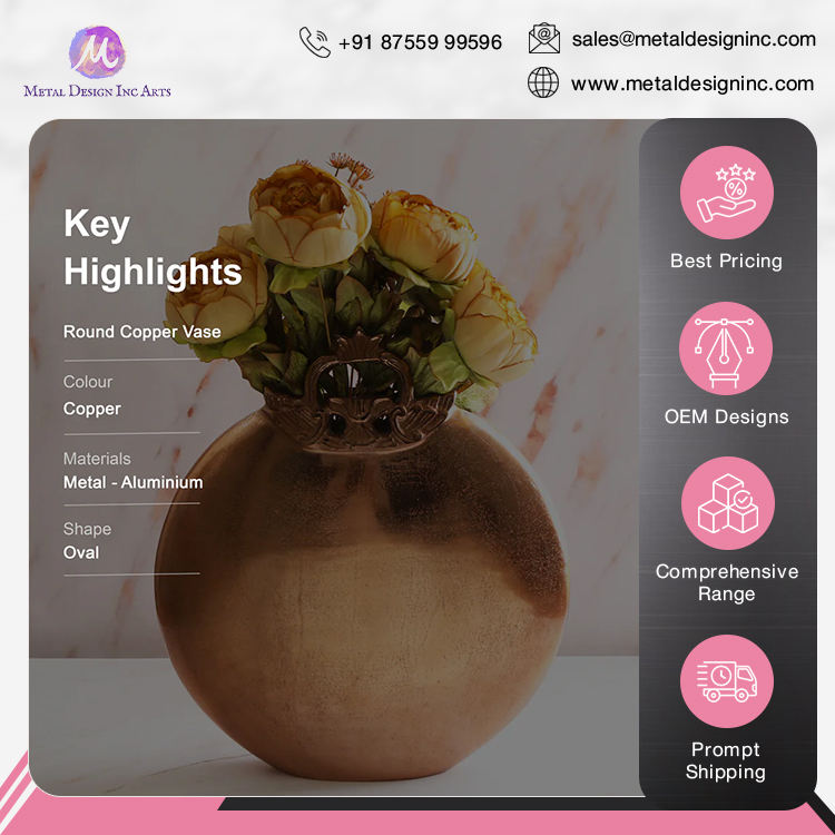 Product Name:Rose Gold Copper Aluminium Oval Vase