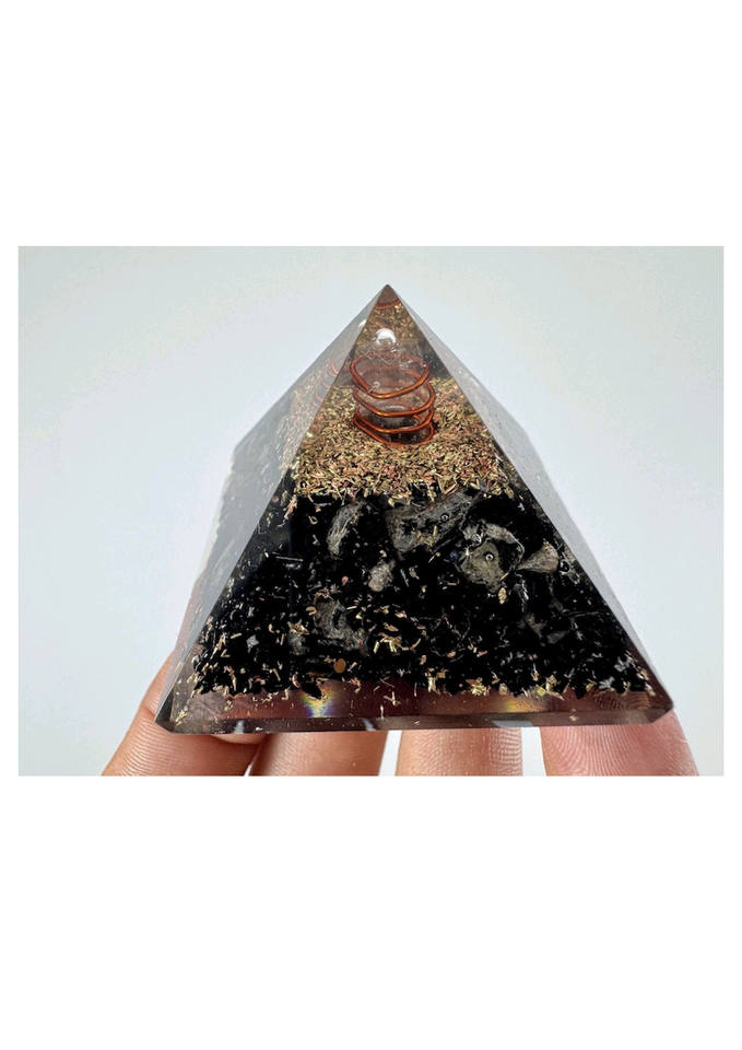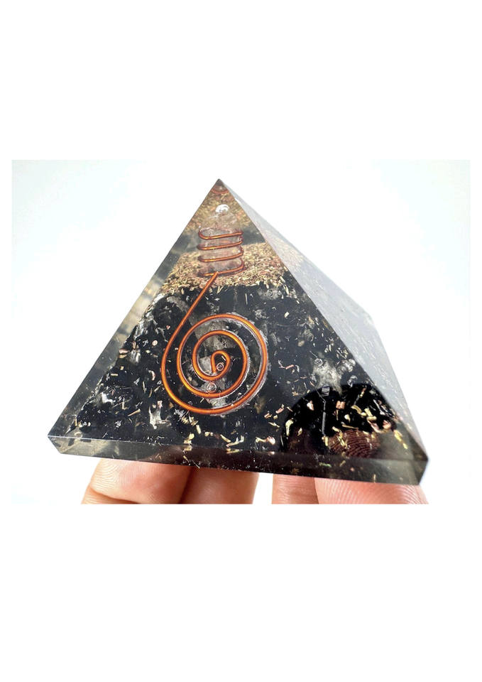Unique Selenite Orgone Black Tourmaline Pyramid Crystal With Healing Coil Natural EMF Protection Pyramid for Home Office Decor