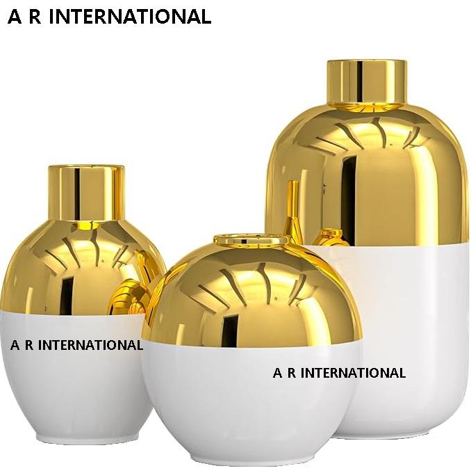 Unique Set of 3 Nordic Luxury Gold Iron Vase Modern New Popular Tabletop Metal Flower vase Home Ornament for Wedding Occasions