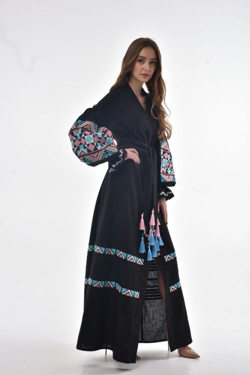 Unique Sexy V-neck Long-sleeve Floral Embroidery Loose Ukraine Best Dresses Spring Autumn Women Boho Casual Beach With Belt