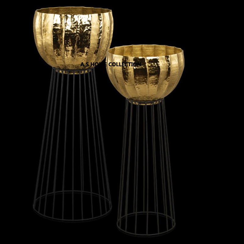 Unique Shape Decorative Golden Round Metal Garden Decoration Home Planters