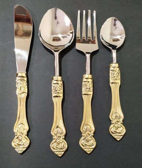 Unique Stainless Steel Metal Golden Plated Spray Paint Cutlery Color Handle Party Wedding Flatware Gold Silverware Set