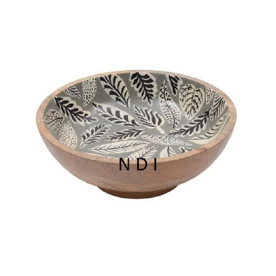 Unique Style Enamel Finishing Designer Round Wooden Deep Bowl Fruits Serving Bowl Customized Best Quality Large Wooden Bowl