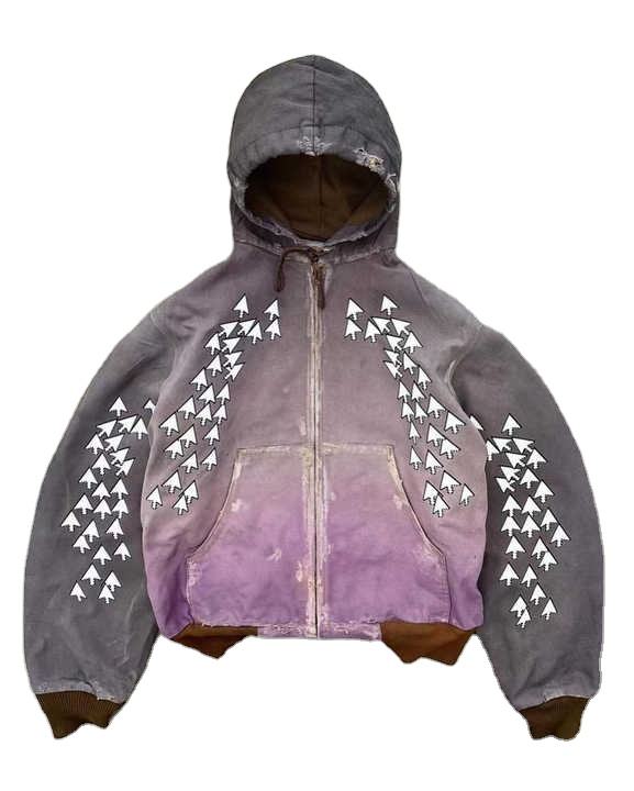 Unique Style High Quality Stone Washed Vintage Cropped Hoodie Custom Printing Heavyweight Cotton French Terry Zip up Hoodie