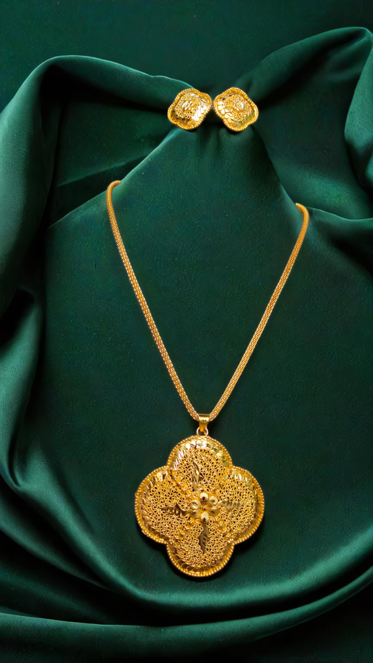 Unique Style Necklace Earrings Set with 22Ct Gold Plated Trendy Designed Necklace Earrings Set For Women Wear Jewelry