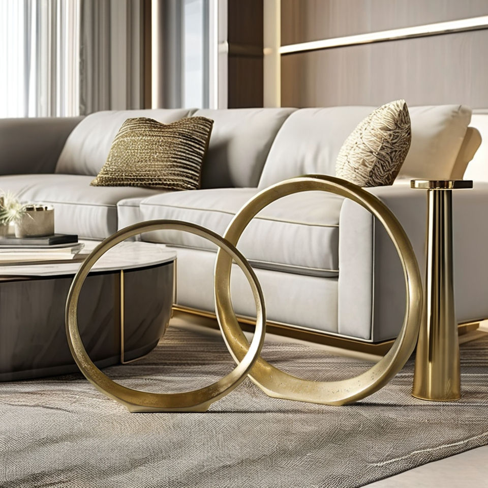 Unique Style Ring Shaped Metal Luxury Sculptures Home Decorative & Table Centerpiece with brass finished Metal Sculptures