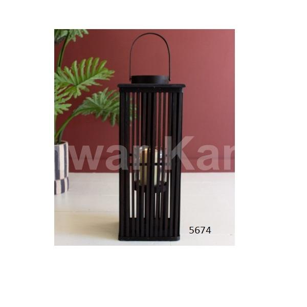 Unique Style Tall Brown Rectangle Bamboo Lantern with Glass for Home Hotel Wedding Party Decoration Item