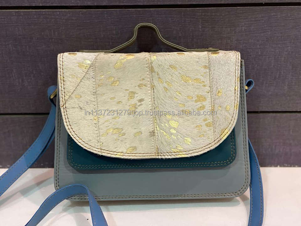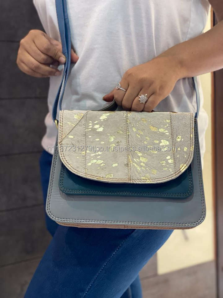 Unique Stylish Handmade Recycled Leather Metallic Fur Sling Bag High Quality Leather Handbag Colorful Leather Women Sling Bags