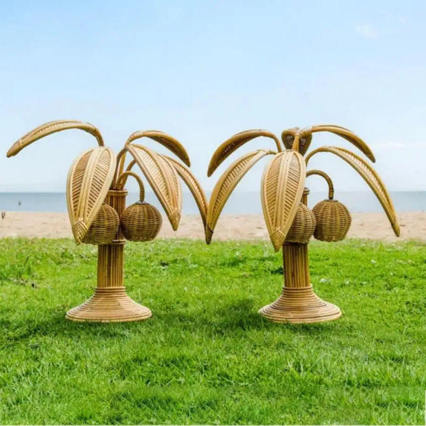 Unique Wall Hanging Decor Rattan Palm Tree for Events Wedding Decor Rattan Table Lamp Party Decoration from Vietnam Wholesale