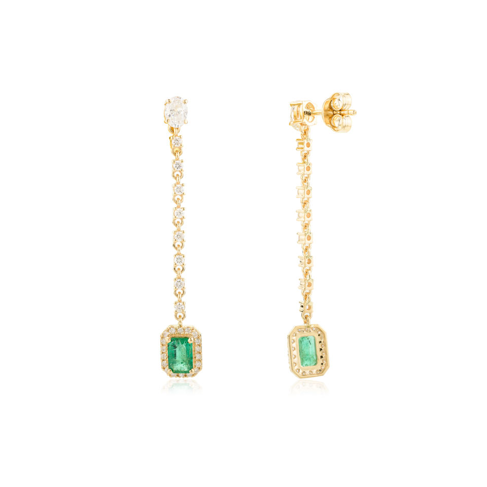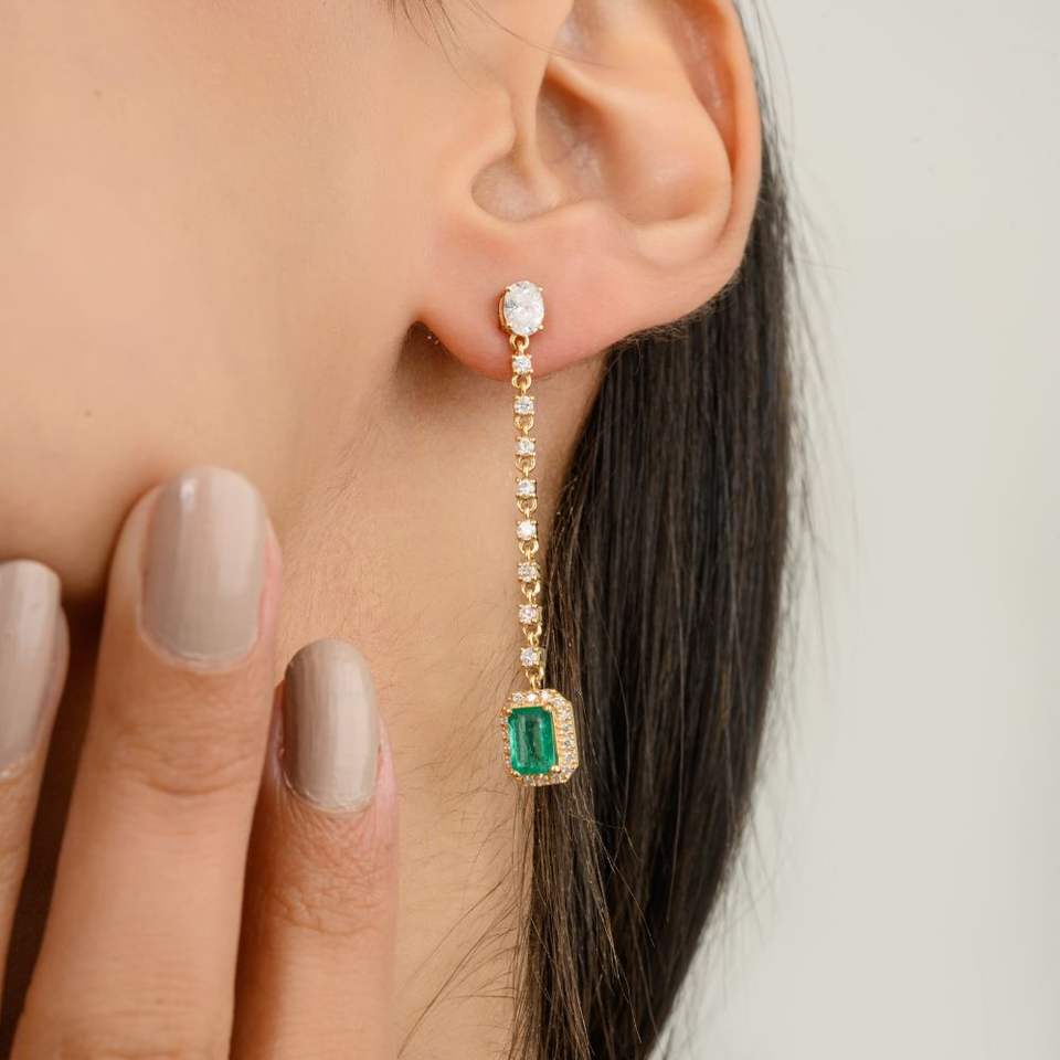 Unique Women Jewelry Natural Octagon Cut Emerald and Diamond Dangle Drop Earrings in 18k Solid Yellow Gold Wholesale Price