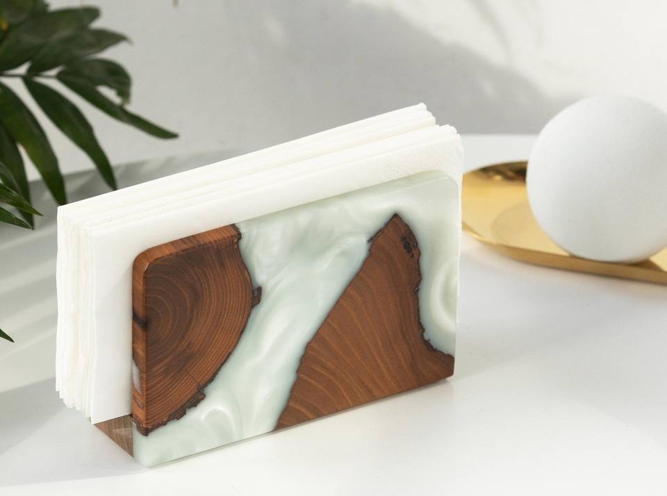 Unique Wood Epoxy Napkin Holder Handmade Dining Table Decor for Kitchen Lovers and Entertaining Enthusiasts