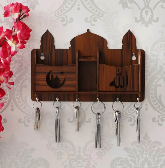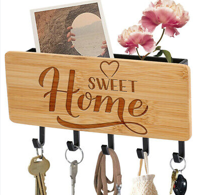 Unique Wood Key Holder for Wall Entryway Mail and Key Hanger with Shelf Key Hook House Key Ring Holder
