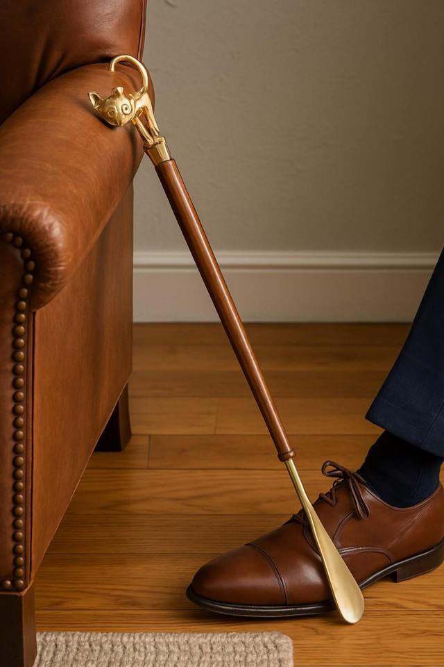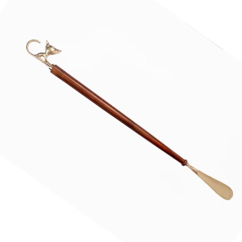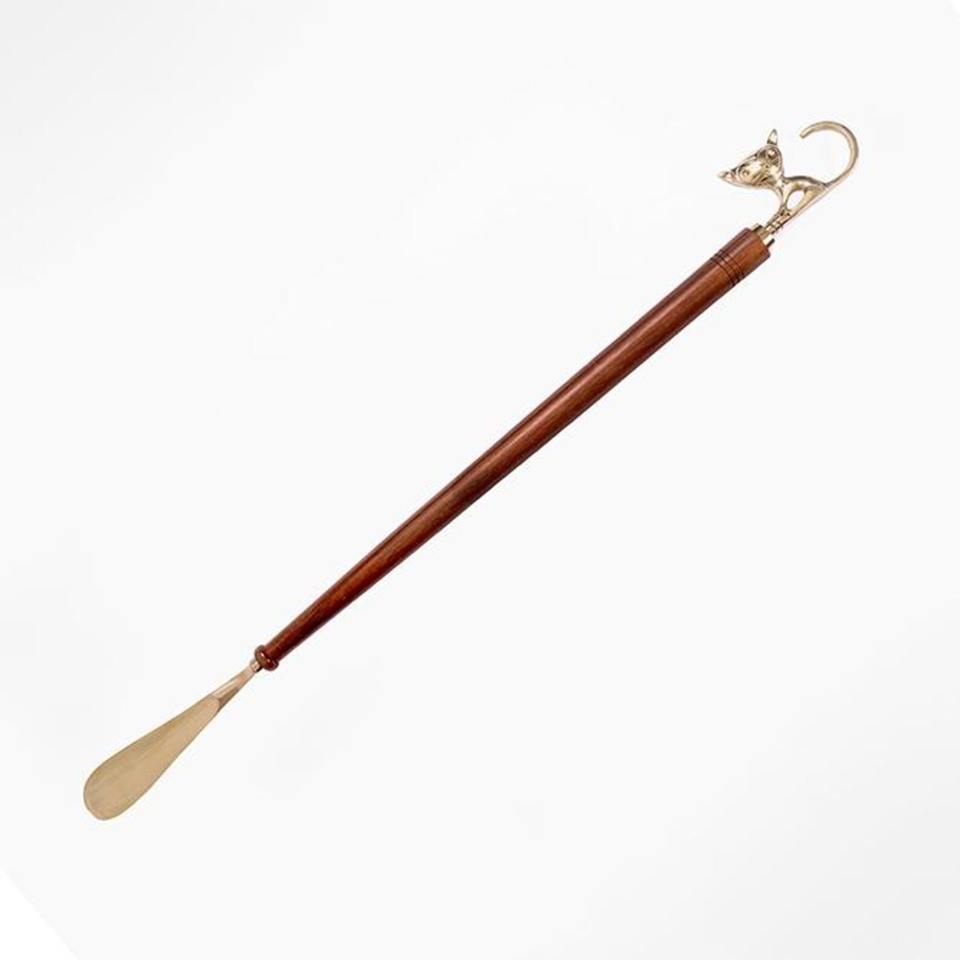 Unique Wooden And Metal Shoe Lifter Featuring Cute Cat Design Handle Ideal For Smooth Shoe Wearing And Decorative Display