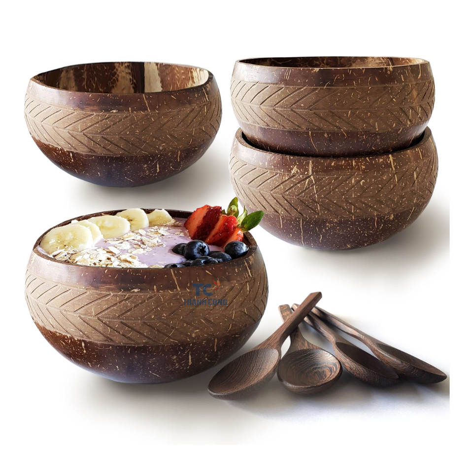 Unique and Natural Coconut Bowls Natural Eco Friendly Handcrafted Custom Logo Smoothie 500ml Natural Coconut Bowl