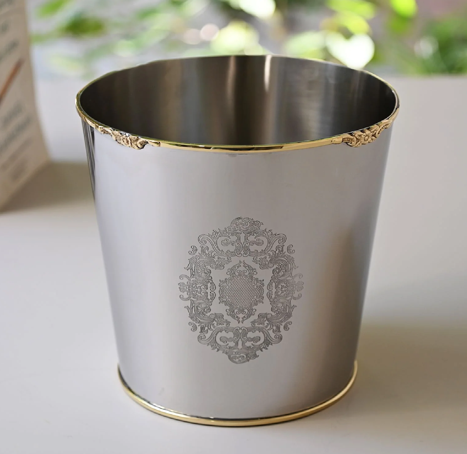 Unique black metal waste bin with wooden outer case cover makes decors statements in home offices available at wholesale prices