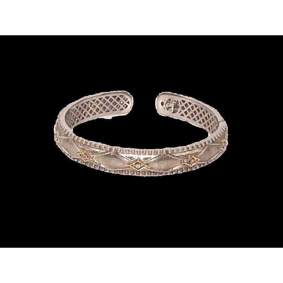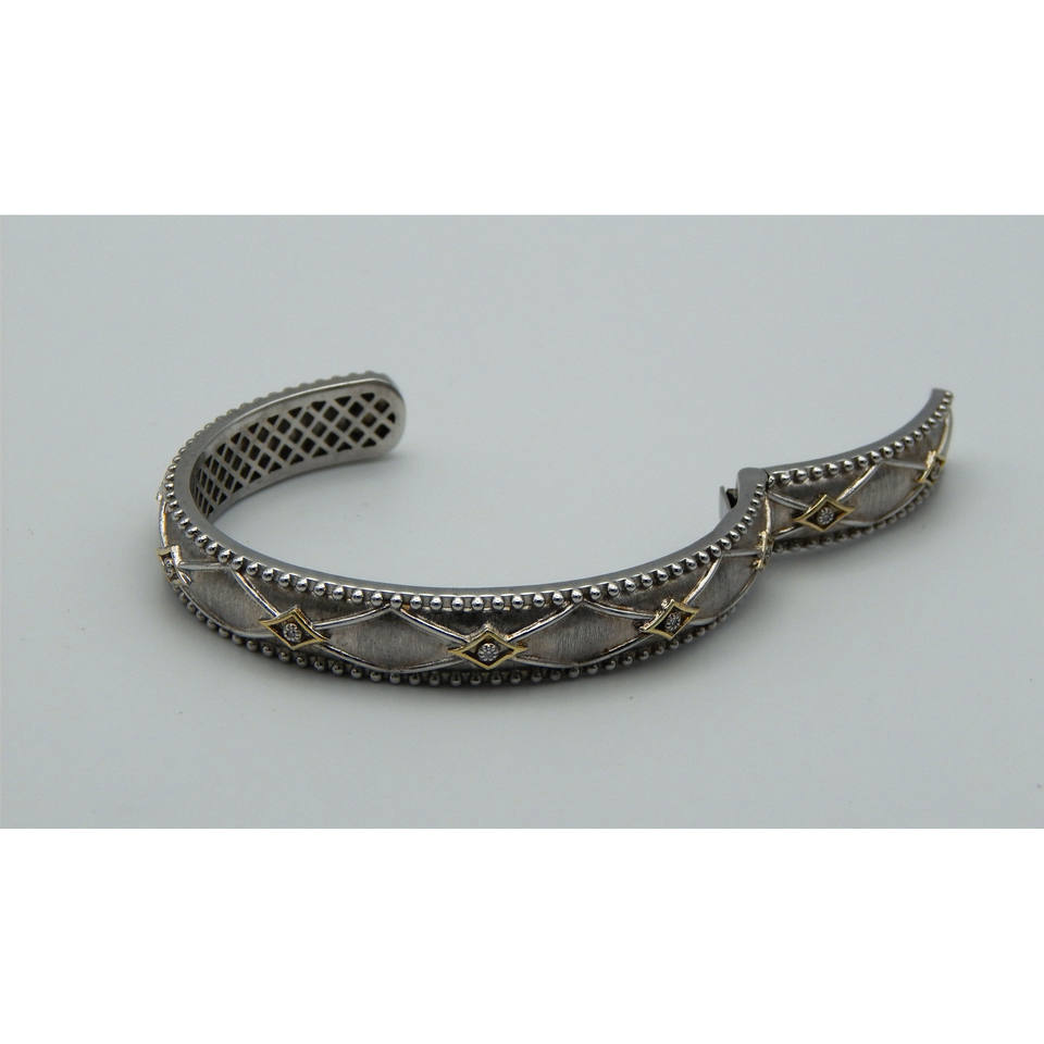 Unique & elegant!. 925 sterling silver & 18K cuff bracelet with diamonds