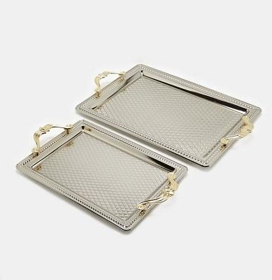 Unique metal serving tray with floral design work handle new stylish best for serving snacks drinks desserts and tea in style