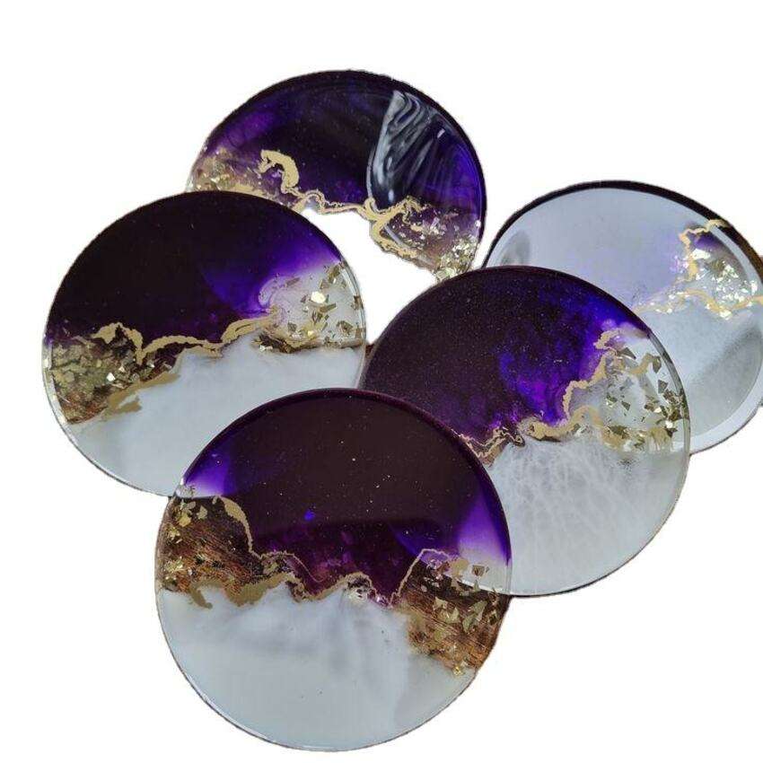Unique resin coaster set with glitter layered pastel epoxy mats handmade for stylish dining table coffee bar and gifting