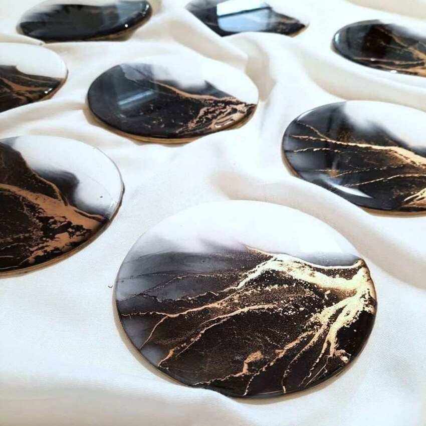 Unique resin coaster set with metallic swirl layers handmade epoxy mats perfect for stylish coffee bar table and gifting