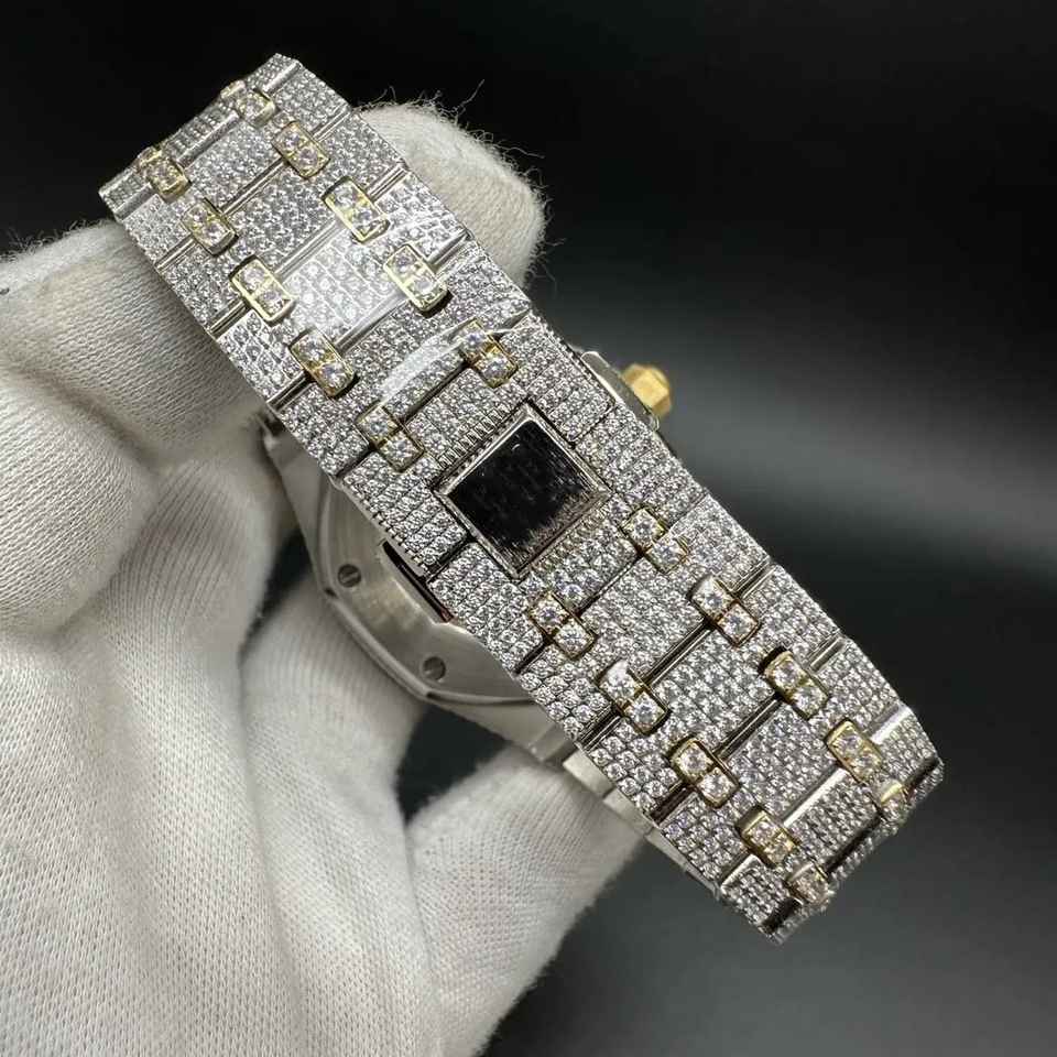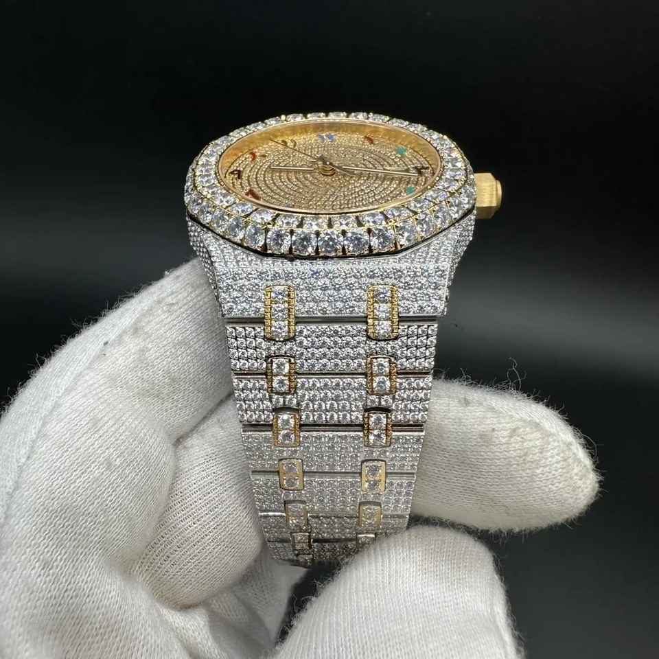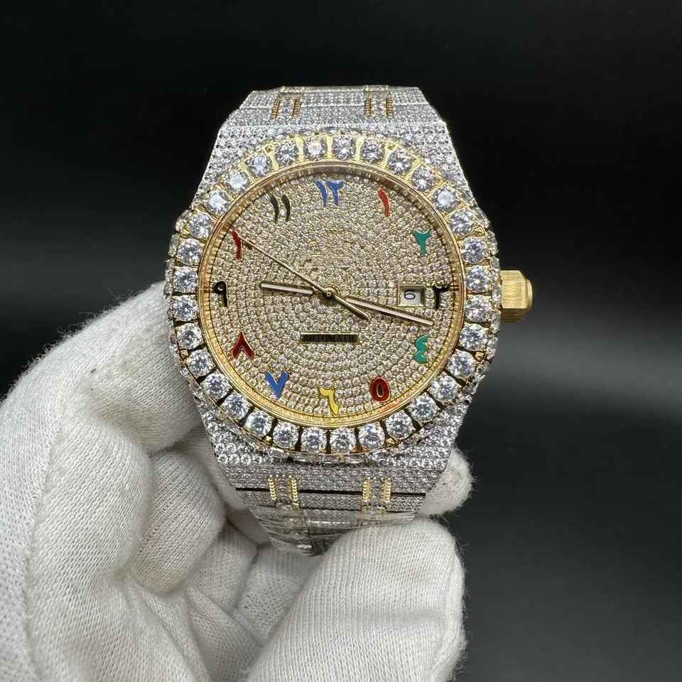 Uniquely Handcrafted Moissanite Diamond Analog Watch High Quality Premium Stainless Steel Band Colorful Arabic Numeral Glass