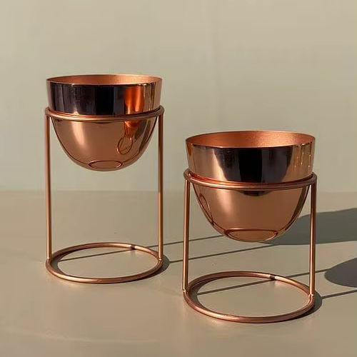 Uniquely Round Crafted Metal Decorative Garden Planter With Artistic Appeal Ideal For Landscaping And Balcony Plant Displays