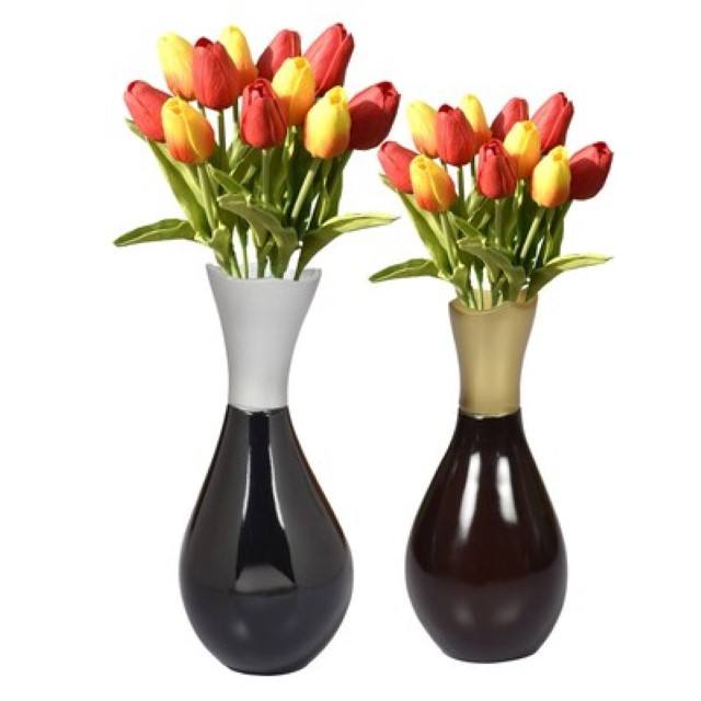 Uniquewise Aluminium Casted Modern Decorative Flower Table Vase Brown and Gold Small with Tulips Home Decor Decoration