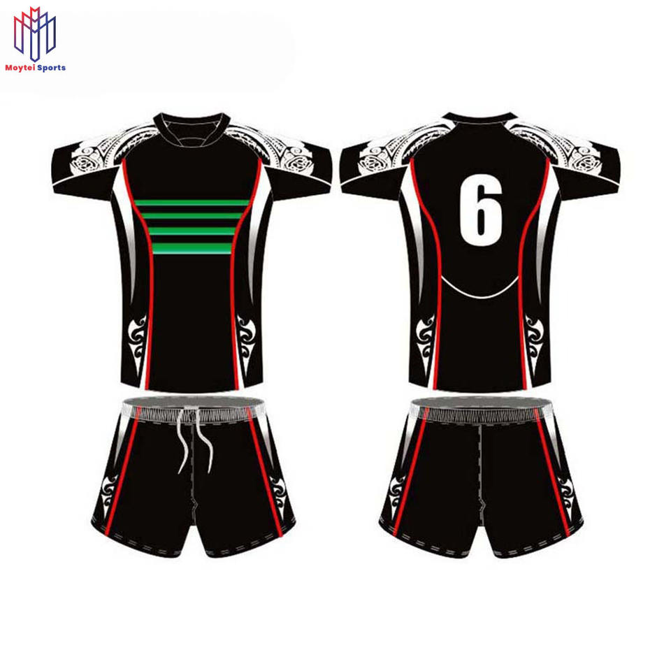 Unisex 100% Polyester Rugby Football Wear Custom Sportswear Uniform Sets with Sublimation Logo & Number Printing Shirts Jerseys