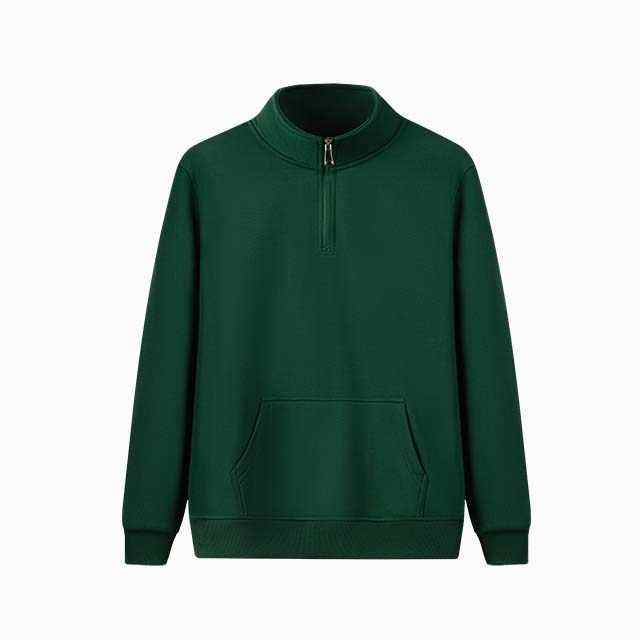 Unisex 100% Polyester Fleece 1/4 Zip on Front With Kangaroo Pocket Knitted Rib Cuffs and Bottom Blank Pullover Sweat Shirt