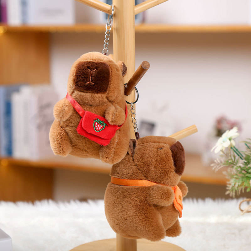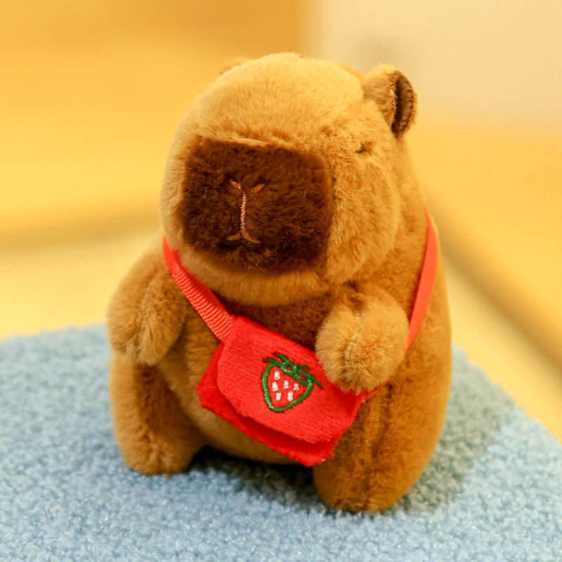 Unisex 12cm Strawberry Banana Satchel Pendant Cotton Fabric Capibala Hanging Couple Backpack for Birthday Gifts for Girls