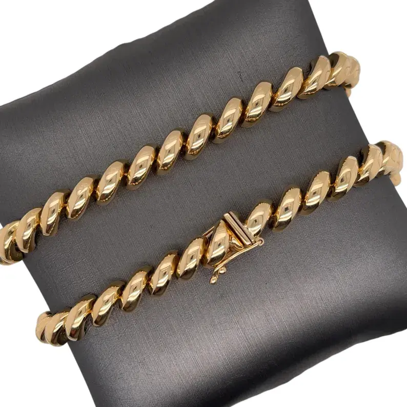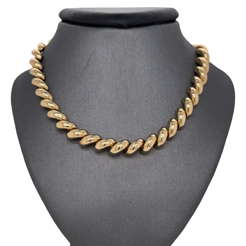 Unisex 14kt Solid Pure Gold Chain Marco Twisted Link Cuban Style Stainless Steel Alloy Fashionable Box Clasp Closure Gift