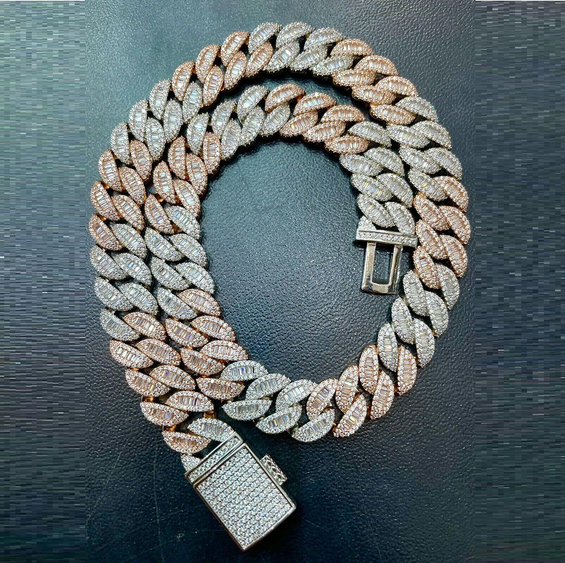 Unisex 16MM Baguette and Round VVS Moissanite Necklace with Miami Cuban Link Chain Eye-Catching Fashion Accessory for Men Women