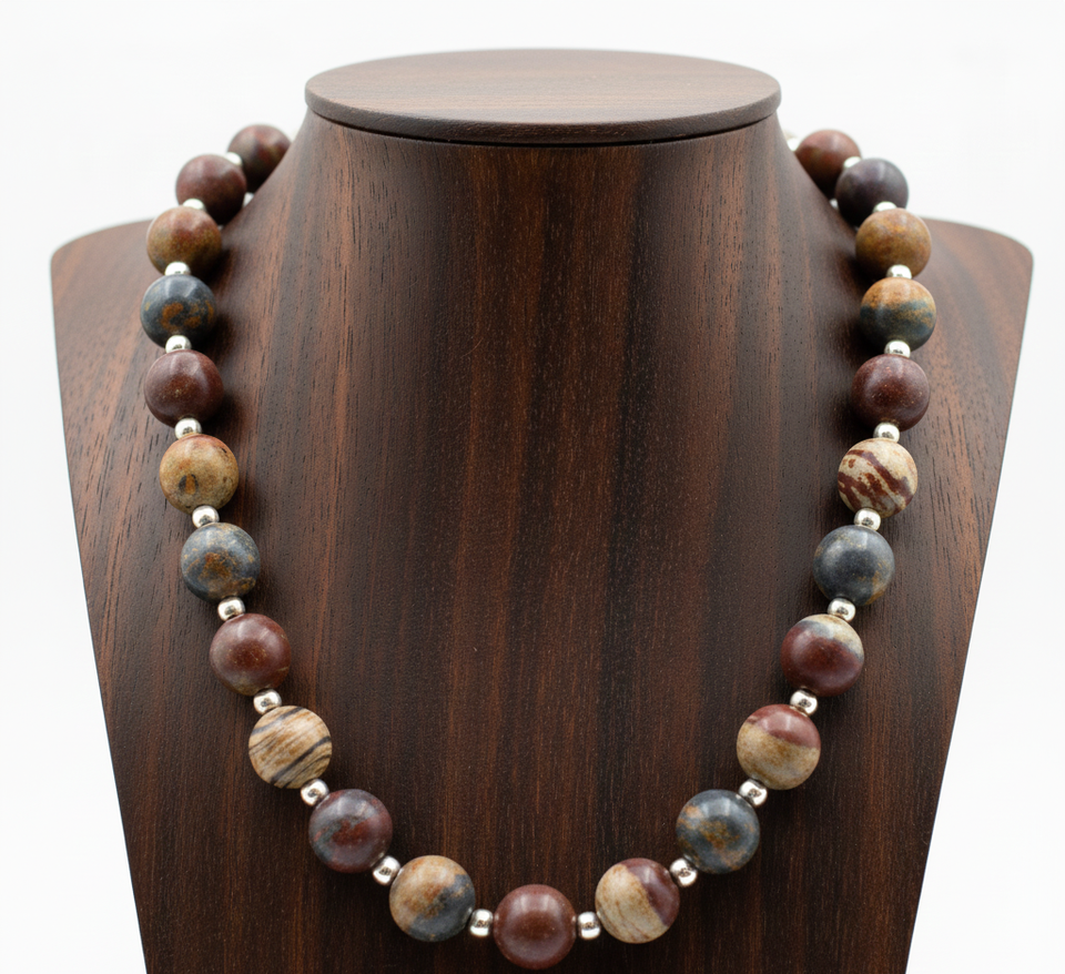 Unisex 18-Inch Silver 925 Lock Beaded Bracelet Necklace with Jasper Crystal Geometric Gold Plated Trendy Fashion Jewelry Gift