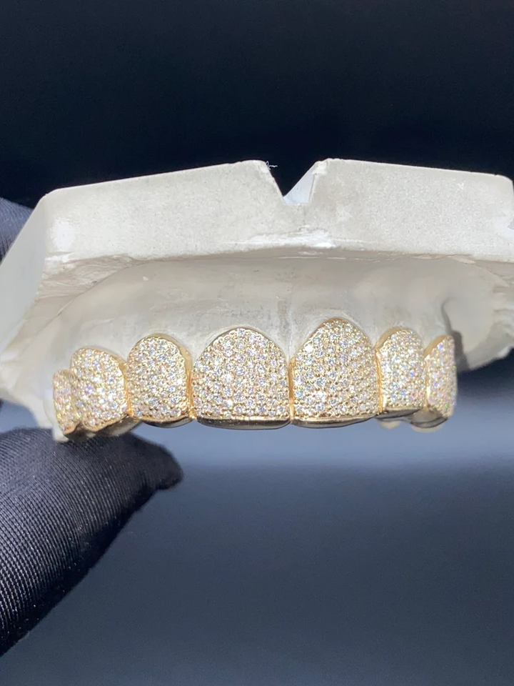 Unisex 18K Gold & 925 Silver Plated Diamond Iced Out White Gold Grillz Fine Unisex Body Jewelry