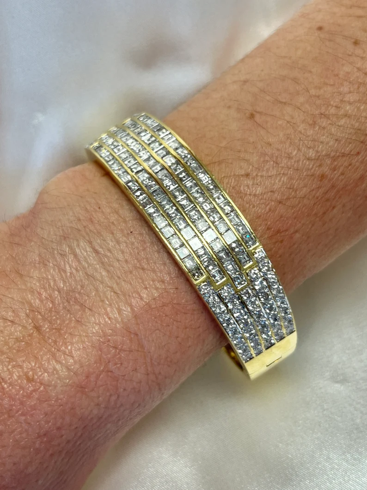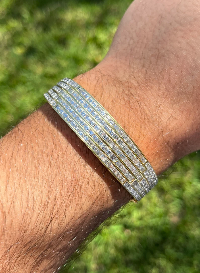 Unisex 18k Yellow Gold Vintage Multi-Row Diamond Encrusted Cuff Bangle Bracelet Baguette Cut Diamond Bracelet For Weddings Alloy