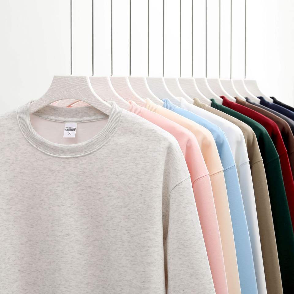 Unisex 300G Woven T-Shirt Autumn Round Neck Sweatshirt With Long Sleeves Casual Sports Top Men Fitness Pullover Oversized Fit
