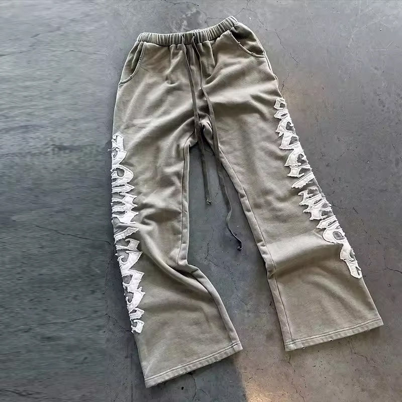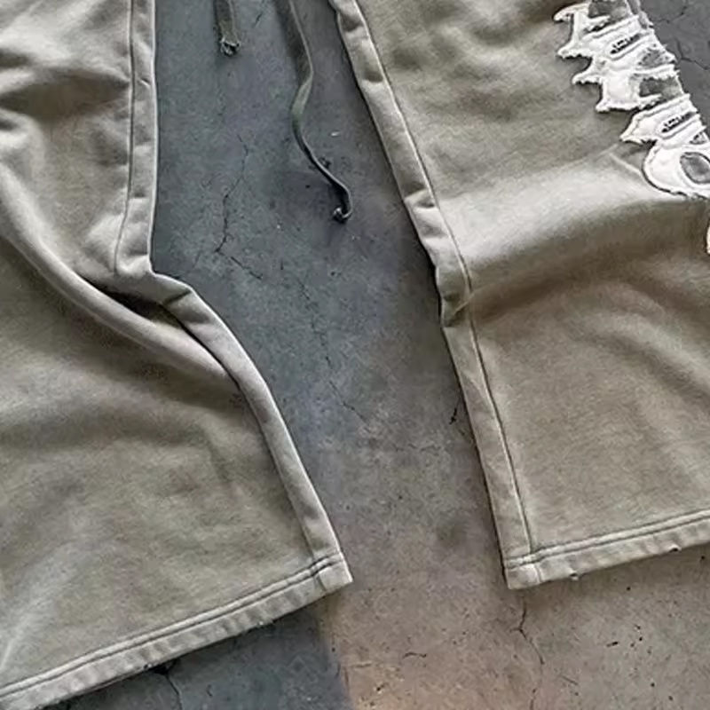Unisex 320GSM Cropped Hoodie Distress Embroidery Letters Top Trending Double Zipper Solid Straight Leg Pants Custom Designs