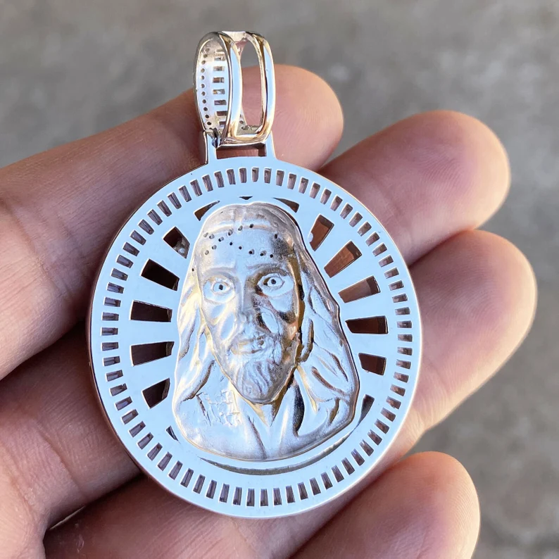 Unisex 925 Sterling Silver Plated Bling Iced Jesus Face Pendant Hip Hop Style Custom Religious Charm for Party Stainless Steel
