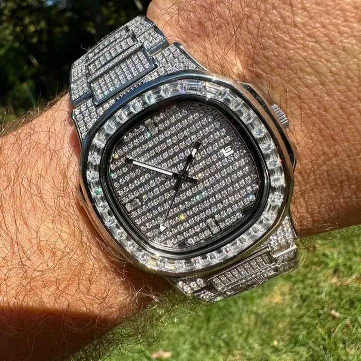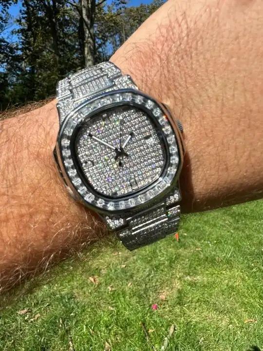 Unisex 925 Sterling Silver Real Baguette Moissanite 30mm Glass Dial Quartz Movement Stainless Steel Luxury Hi Fashion Watch