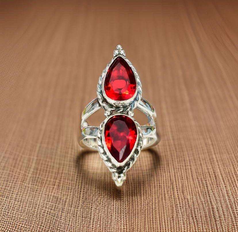 Unisex 925 Sterling Silver Wedding Engagement Party Ring Natural Garnet Gemstone Trendy Flower Design Pear Cut Bezel Setting