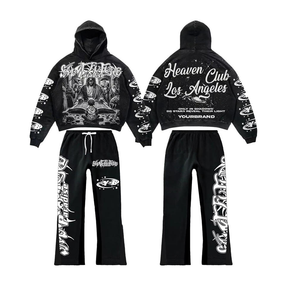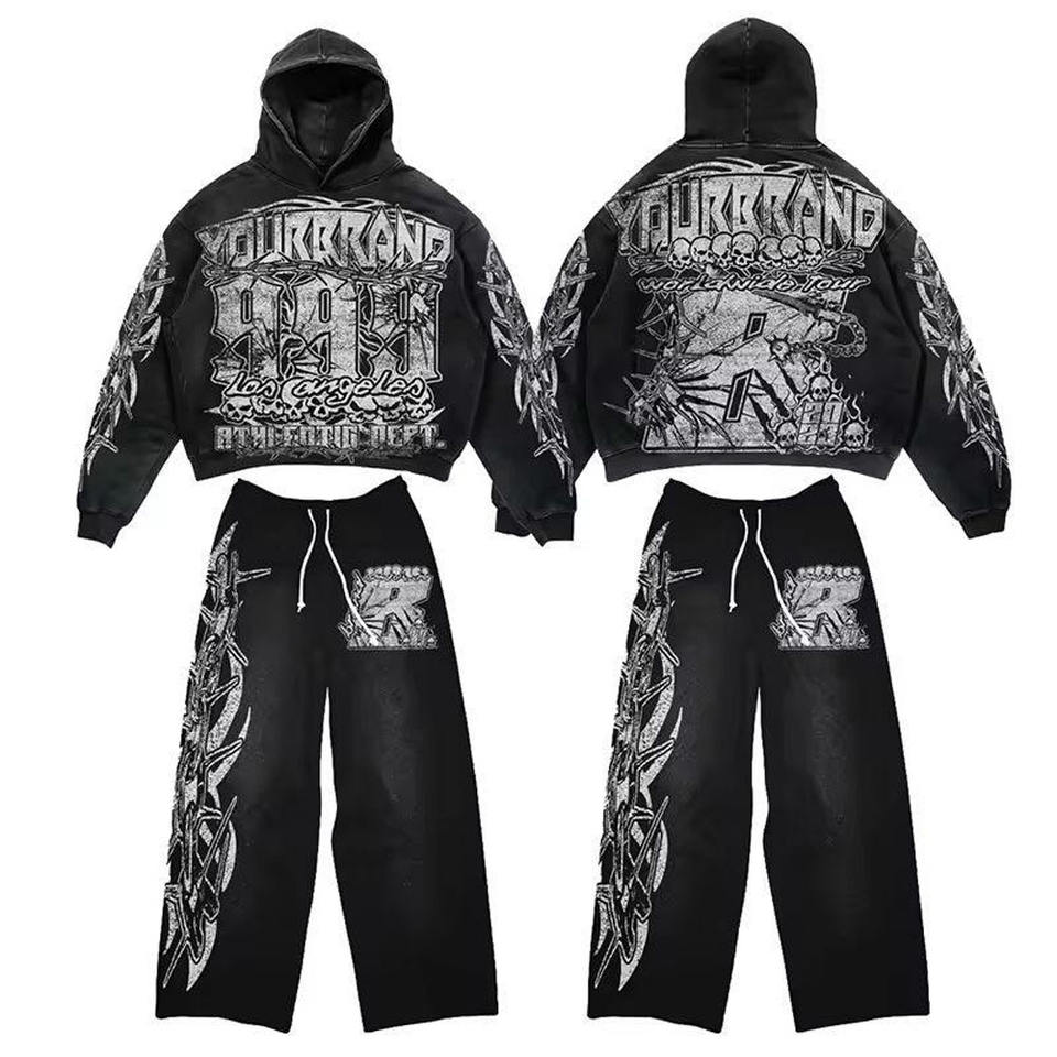 Unisex Acid Wash Embroidery Tracksuit Custom Logo 100% Cotton Full Sleeve Fashion Streetwear Two Piece Set Winter OEM