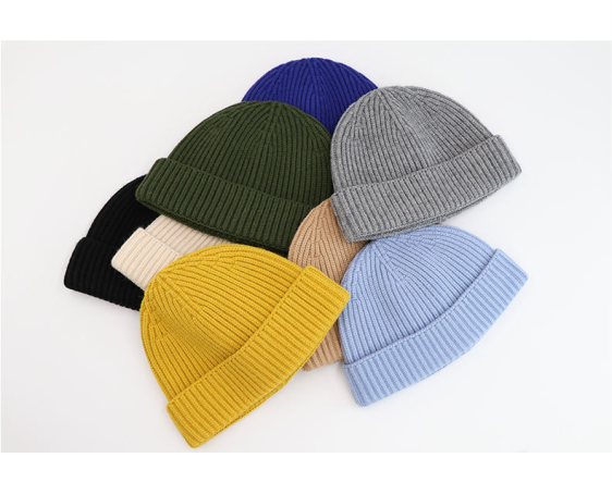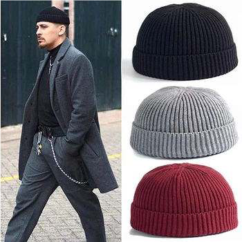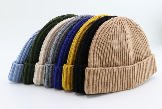 Unisex Adult Winter Roll-up Trawler Watch Skull Cap Custom Logo Acrylic Short Cuff Fisherman Cap with Beach Appeal Black Knit
