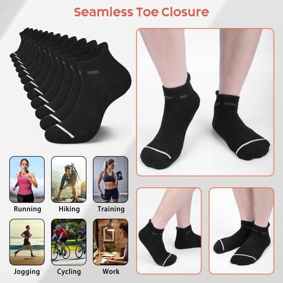 Unisex Athletic Pairs Mens Ankle Socks Black Athletic Running Cushioned Men's Breathable Low Cut Socks