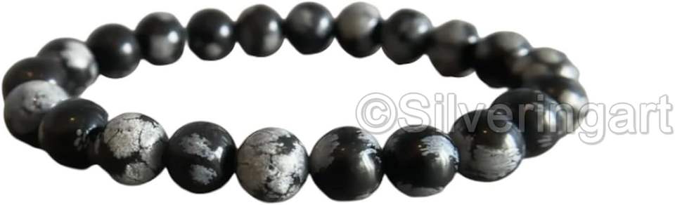 Unisex Beads Bracelet Natural Snowflake Obsidian Gemstone Healing 8mm Beaded Stretch Bracelet Womens Elastic Band Mens Bracelet