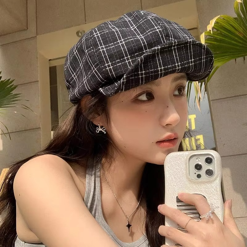 Unisex Beret Hat-Summer Collection 3D Embroidery Denim Fabric Sunscreen Small Face Effect Octagonal Design Thin Breathable