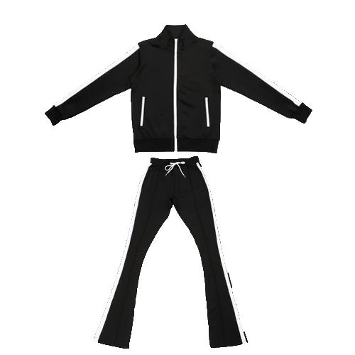 Unisex Black Flared Tracksuit Set with White Side Stripes Zip Jacket and Pants