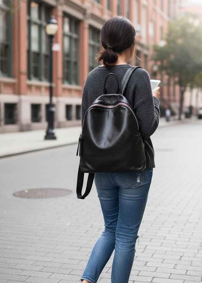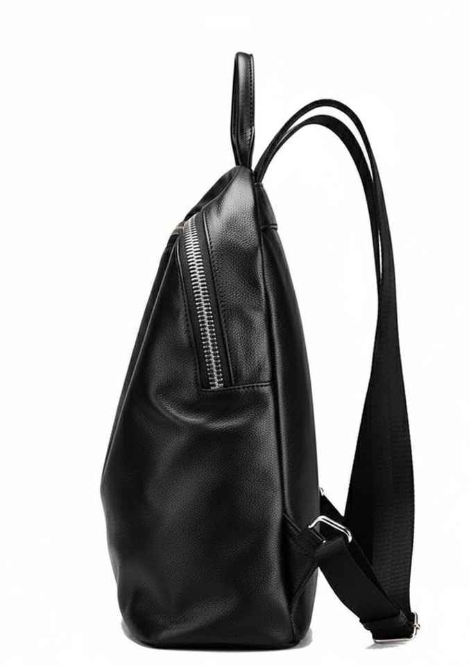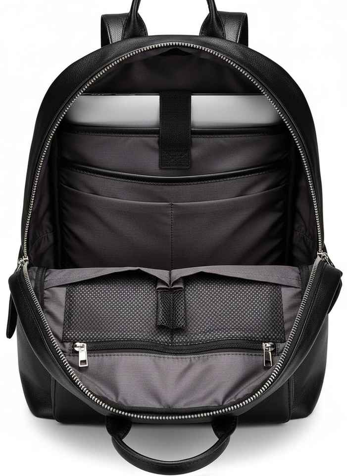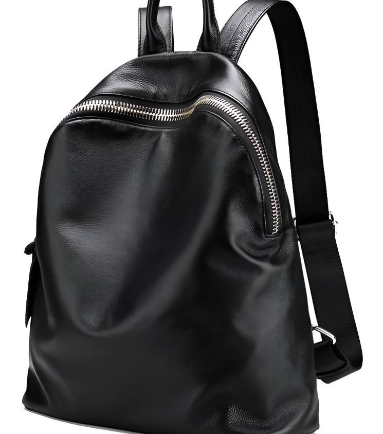 Unisex Black Genuine Leather External Frame Backpack with Zipper Closure Large Capacity Luxury Travel Rucksack Work Bag