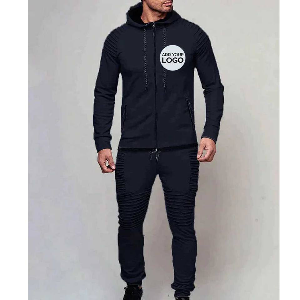 Unisex Black Gym Fitness Zipper Tracksuit Set Zip Hoodie & Jogger Sweatpants Activewear