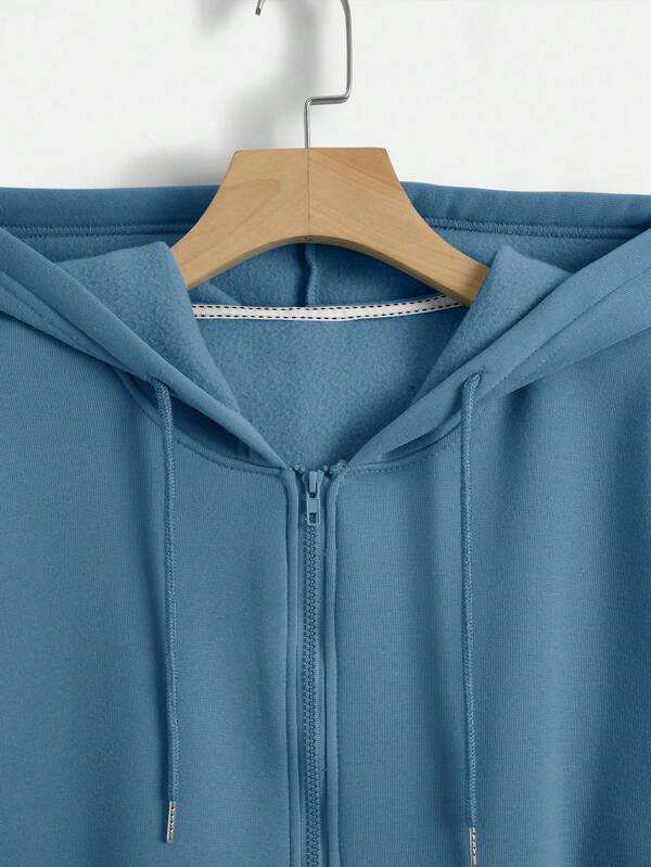 Unisex Blue Zip Hoodie Oversized Cotton Fleece Jacket Kangaroo Pocket Casual Winter Streetwear Outerwear Blank Fashion Top